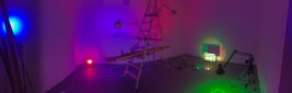 The installation What is the late November doing, consists of colorful lights coexisting with objects, absent images and notes, in an attempt to interpret a condition of abandonment. Based on a line of sketches focusing on the modern internal exile that people experience as a disastrous condition, this installation extends this journey, talking about places, foundations and drifting relationships. With connotations from the past, present and future, a “relational” construction is created, which remembers, observes and imagines the homes and relations that never materialized. Personal experiences, poems, sci-fi movies, memories of uninhabited cities join hands in creating an empty promise.