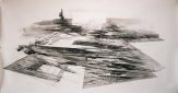 It may not be readily apparent how this great ‘torment’, litost, accompanied by a desire for revenge and a ‘pathetic hypocrisy’, is manifested in Pappas’ work. Looking at his drawings conjures other notions, either on the spot or afterwards: dystopia, heterotopia, futuristic landscape, imaginary architecture (as in paintings by Grigoris Semitekolo), Battersea Power Station (including the flying pig envisioned by Pink Floyd in Animals), Siberia (built and abandoned), Chernobyl (the eerie silence in the Exclusion Zone), science fiction, Andrei Tarkovsky’s film Stalker, subjective architecture, Carceri (Piranesi’s imaginary prisons and the terrible towers of Babel), High-Rise (both the novel by J.G. Ballard and the film of the same name), Monuments of Passaic (Robert Smithson’s unremarkable industrial landscapes). Specifically, High-Rise for Pappas is what Brian Aldiss’ novel Earthworks was for Smithson.